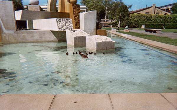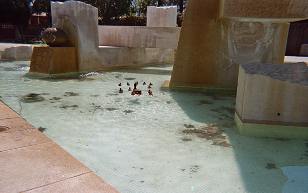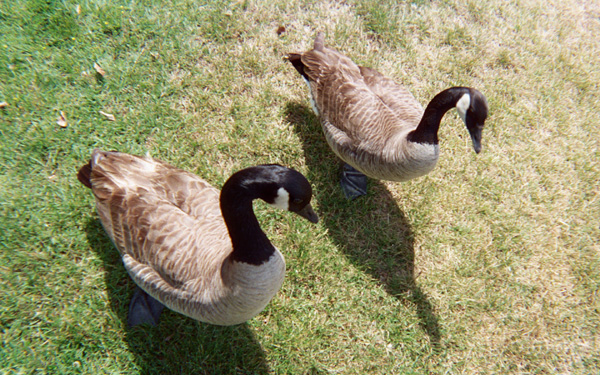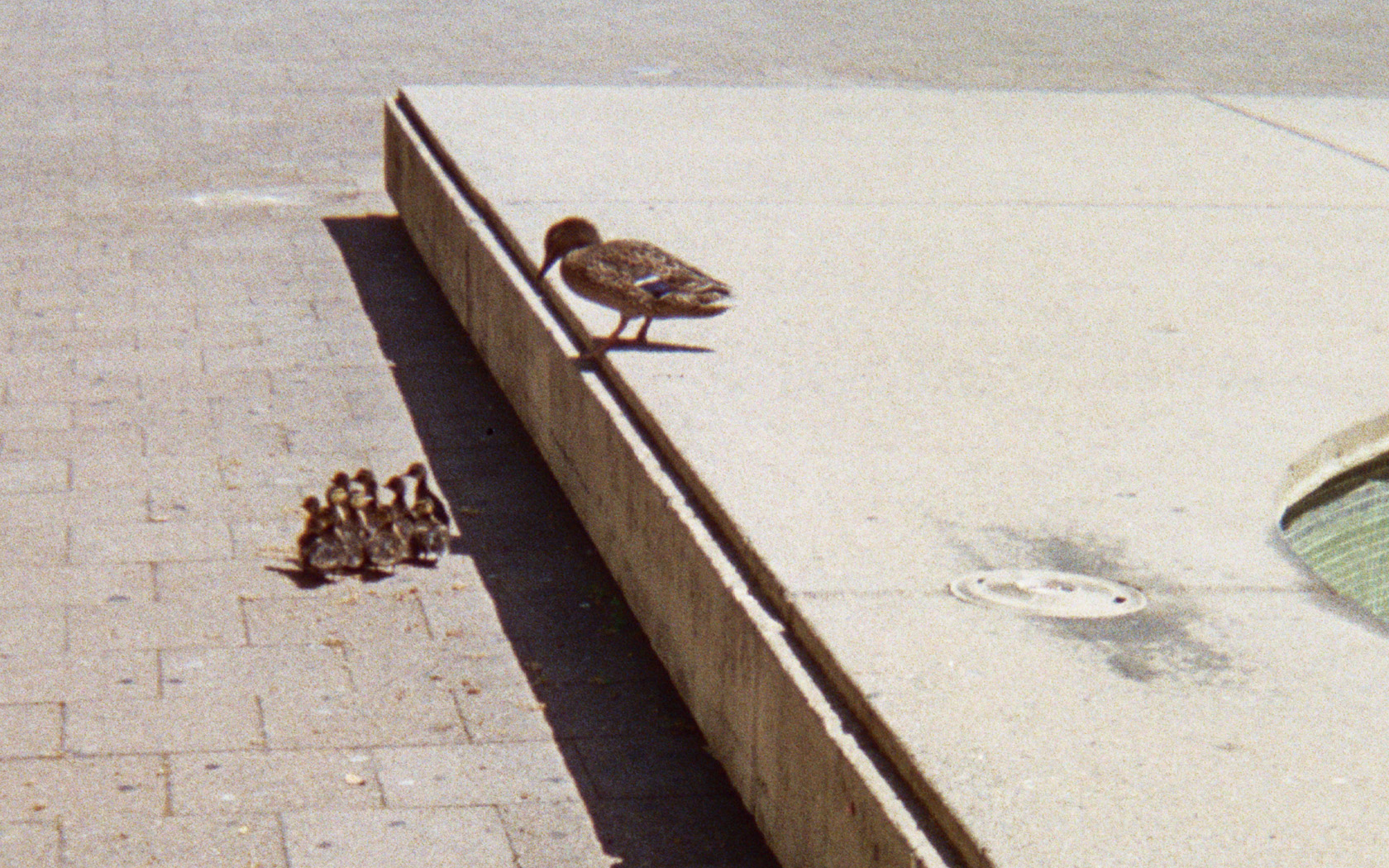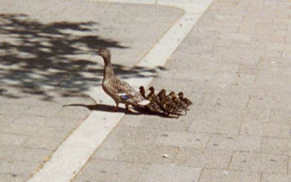 Duck family looking for a place to swim; We're walking. 1680x1050